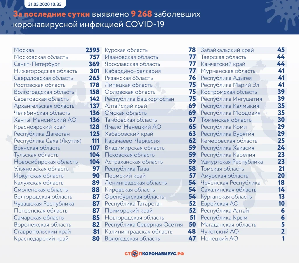 31 мая Тульская область заняла 16-ое место по количеству заболевших коронавирусом за сутки. Сегодняшний прирост заразившихся в регионе - +104 человека. Часть заболевших заразились в Москве - работают там или контактировали с прибывшими из столицы. Количество заболевших в Тульской области за все время - 3855 человек.