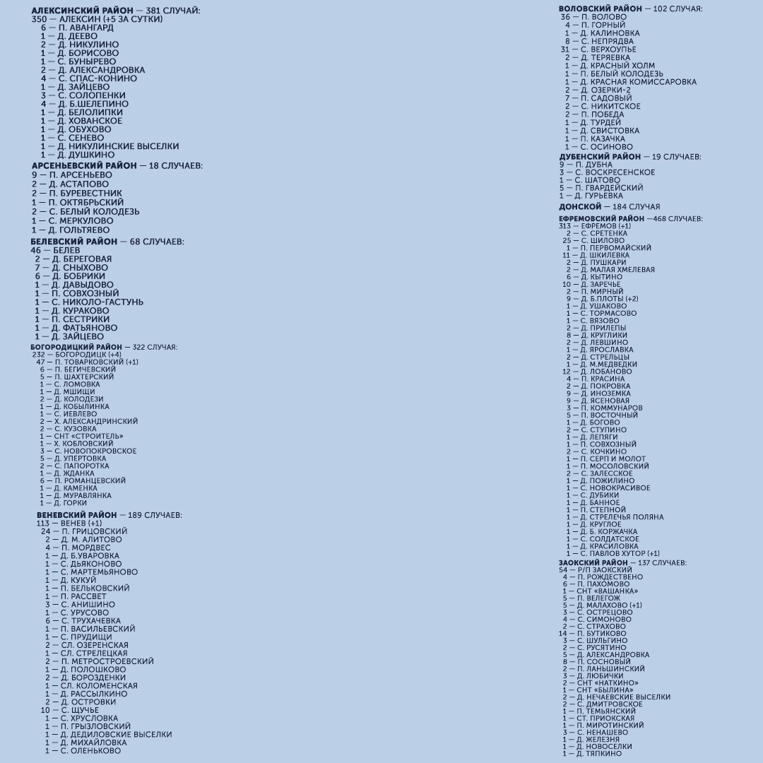 В каких районах Тульской области коронавирус бушует 10 июля?