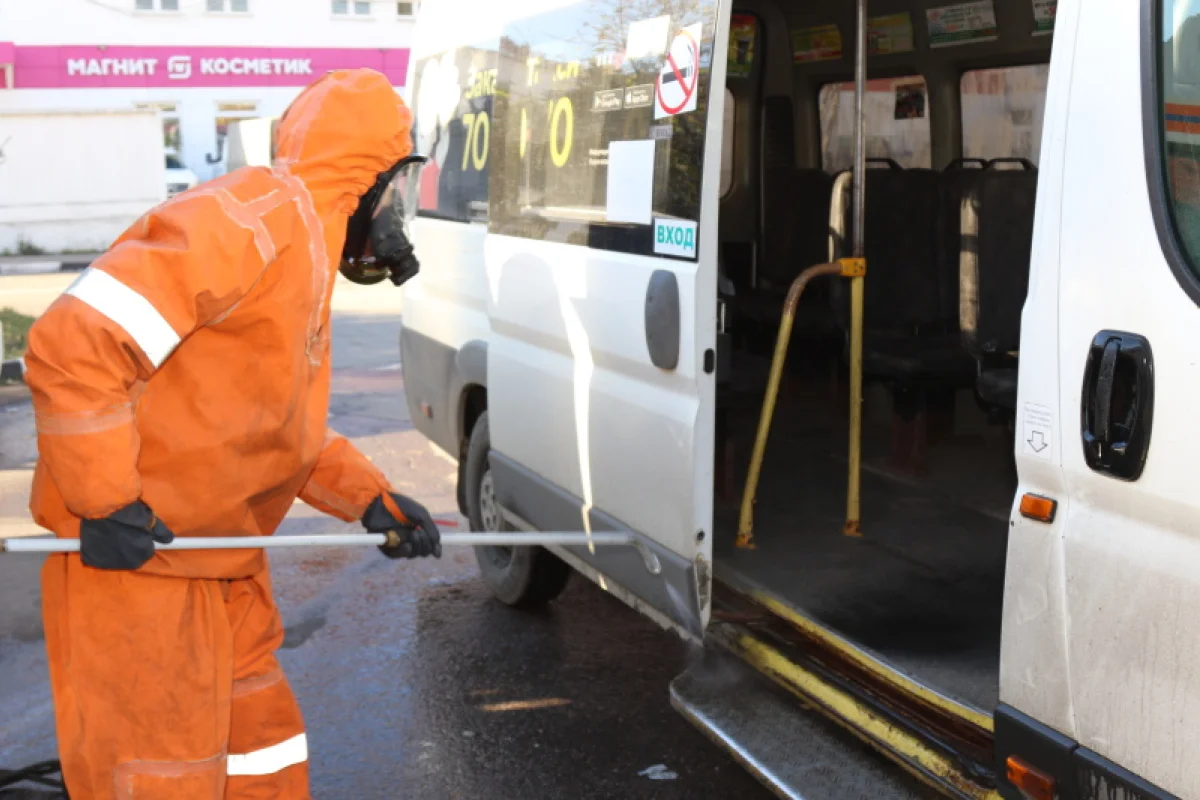 В Туле сотрудники МЧС дезинфицируют транспорт и общественные пространства