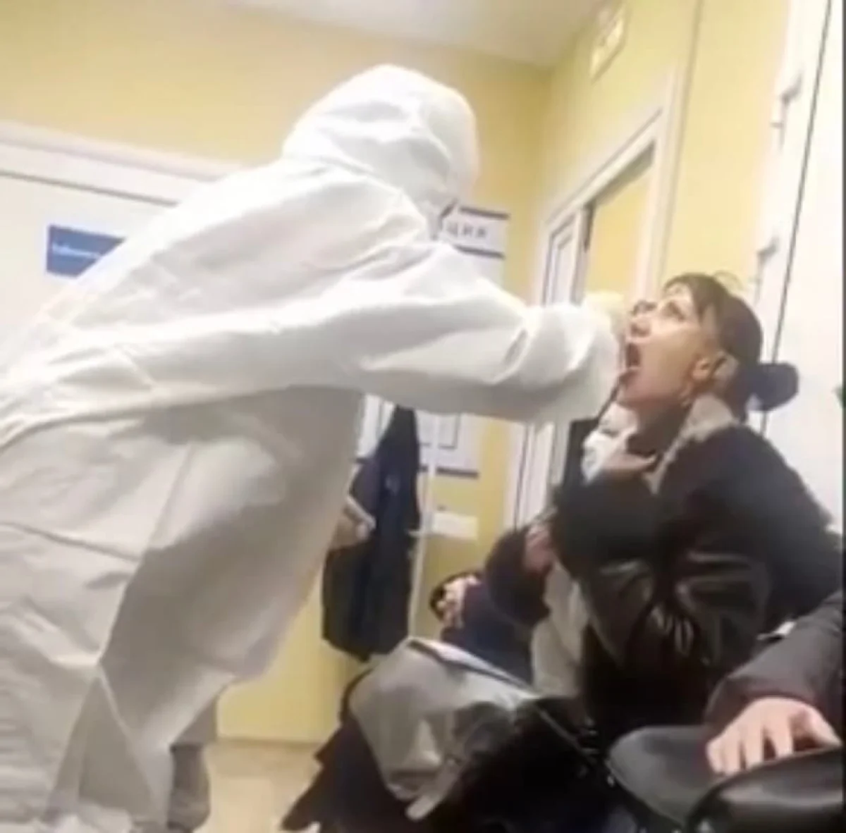 В одном из фельдшерско-акушерских пунктов Тулы у женщины прямо в коридоре, среди остальных пациентов, брали тест на коронавирус. Это засняли на видео люди, сидевшие вместе с ней в очереди. Ролик попал в Интернет.