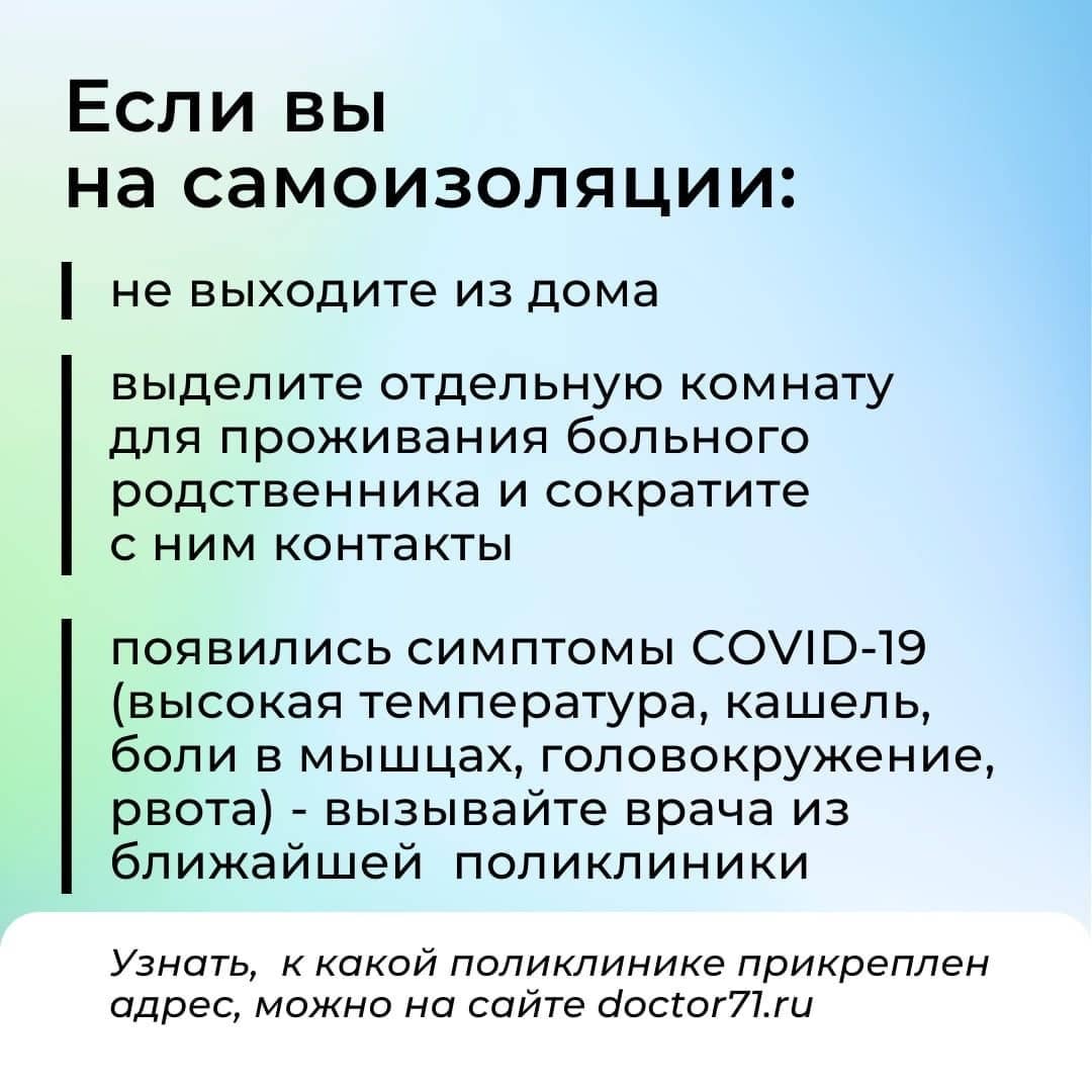 Тулякам минздрав разъяснил правила самоизоляции после контакта с больным коронавирусом