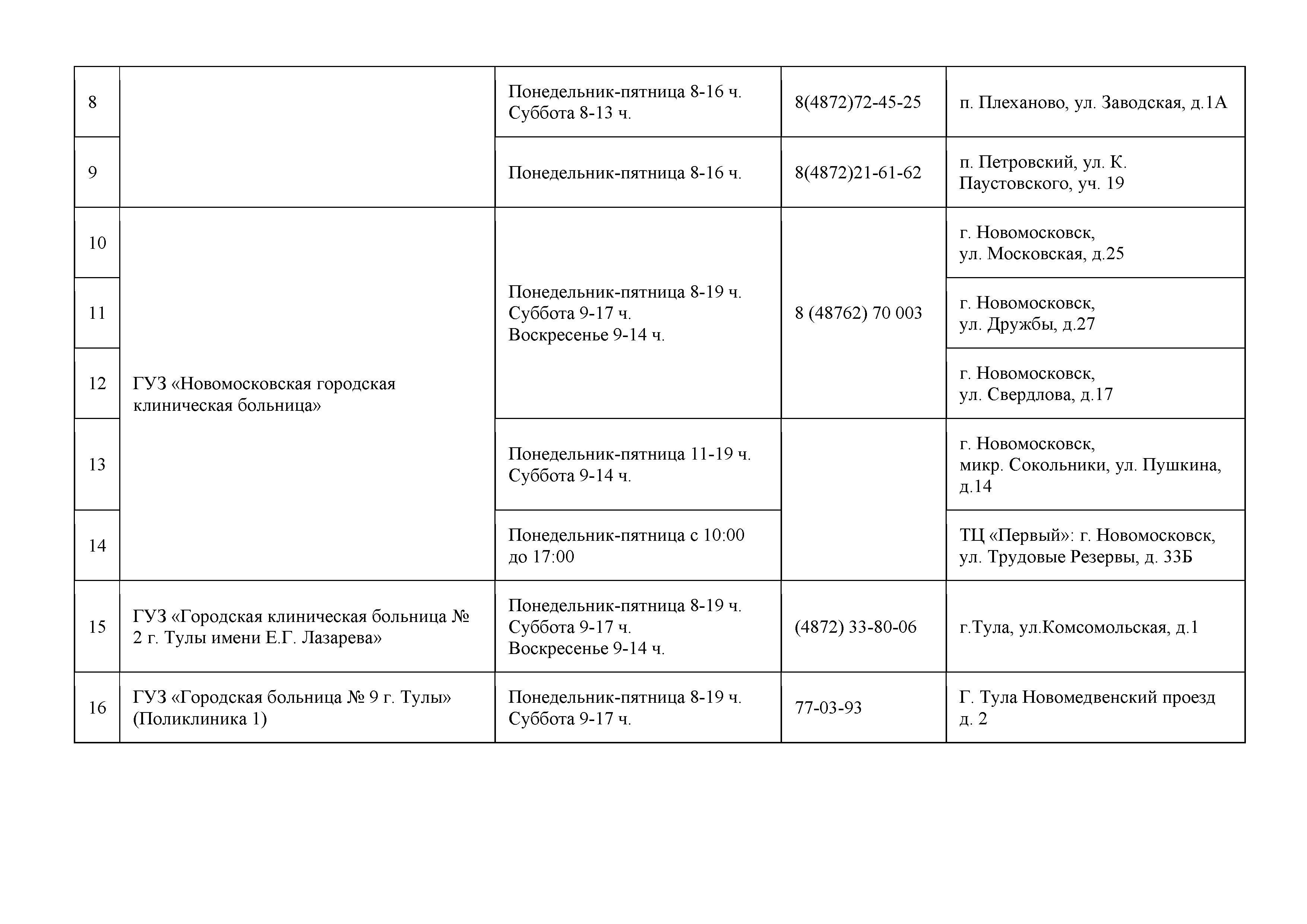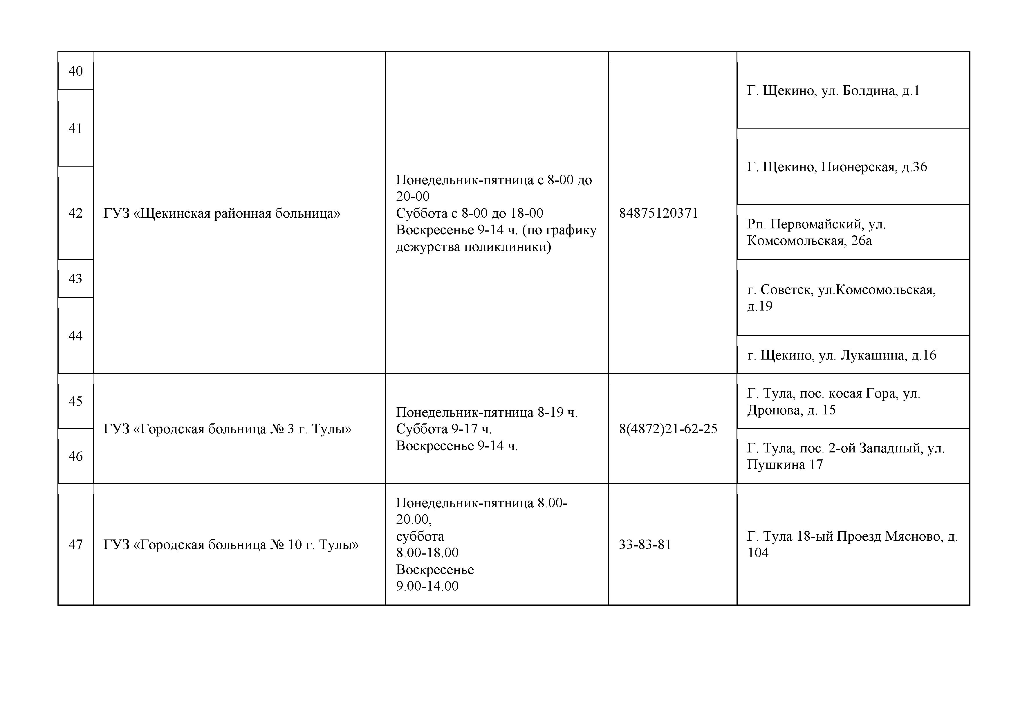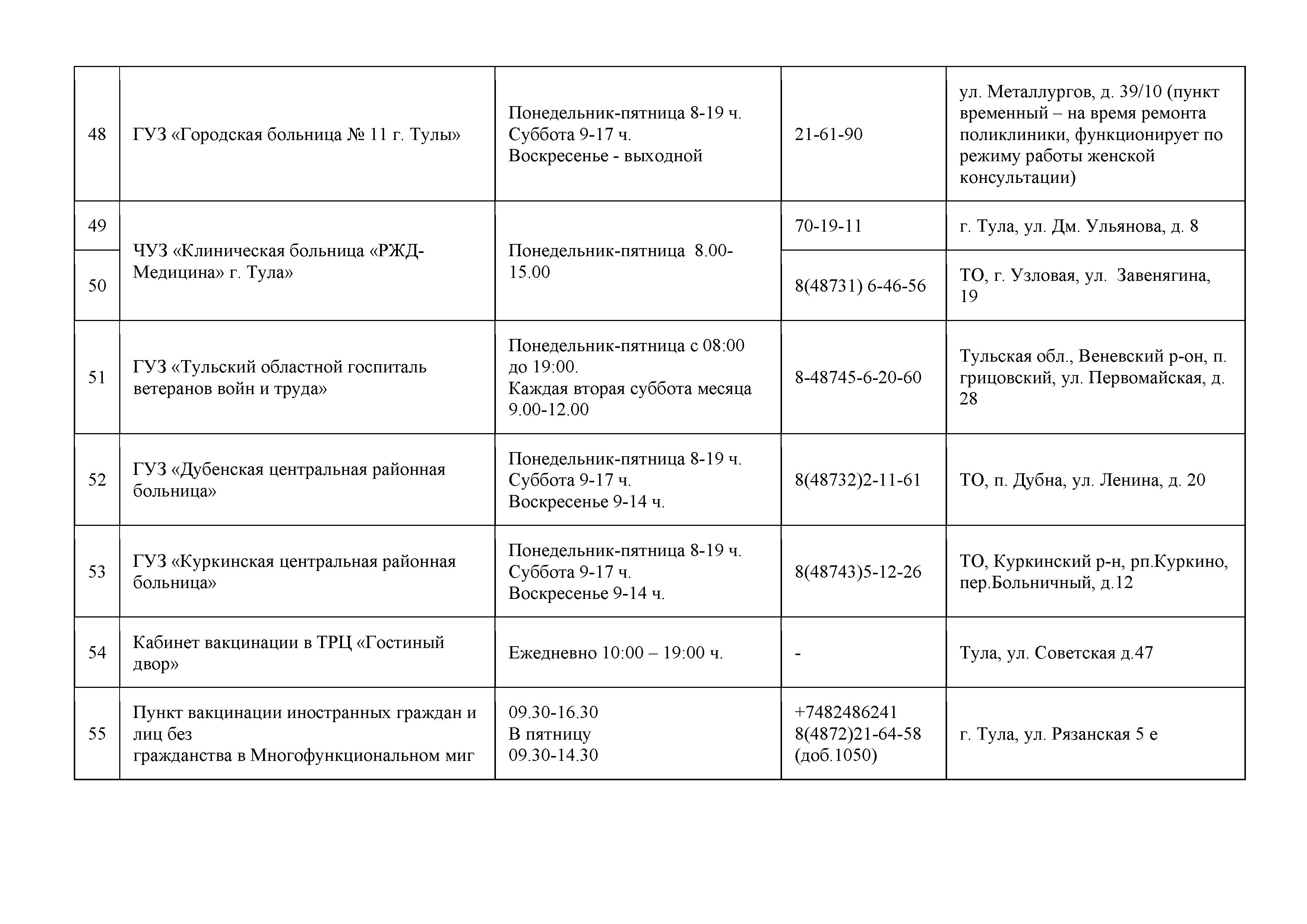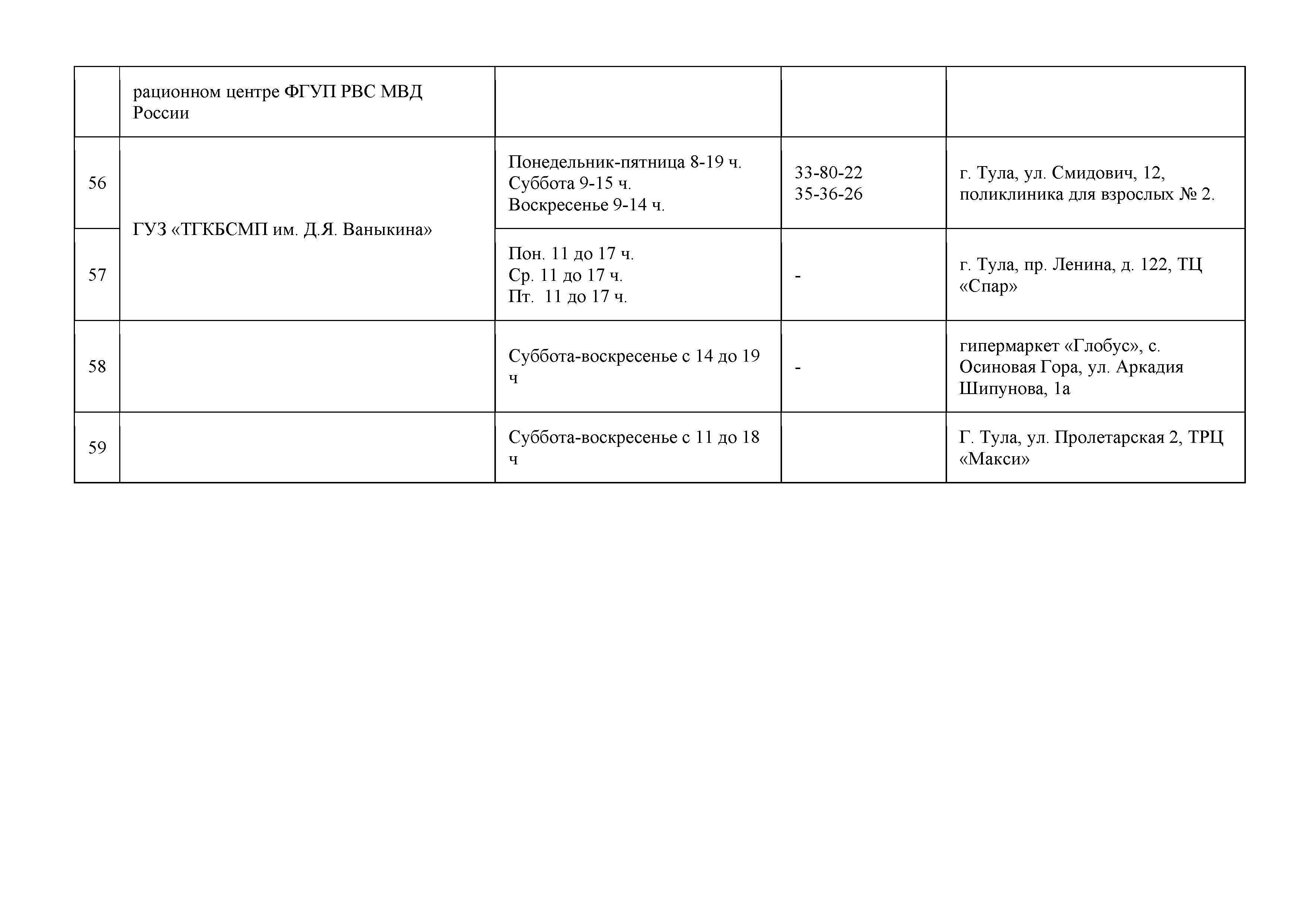 Сообщаем также адреса прививочных пунктов и графики их работы: