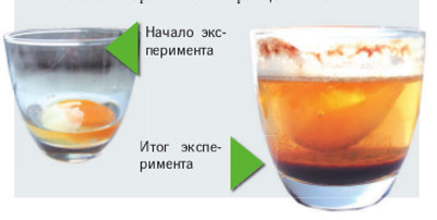 стакана с яйцом появилась огромная белая пена, белок. Желток плавал на поверхности. В стакане выпал темно-бурый