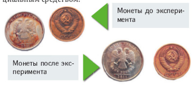 - монета достаточно легко очистилась от ржавчины, будто ее заливали специальным средством.