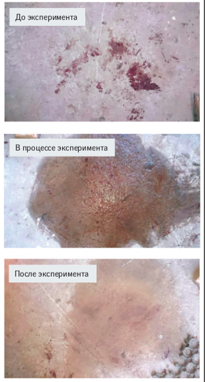 проверяем – от старого кровяного пятна остались практически ничего не осталось. При этом мы не применяли