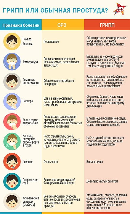 - Стремительное начало: первые симптомы - через 12-15 часов после заражения, в отличие от обычной простуды или ОРВИ, латентный период которых длится до двух суток.