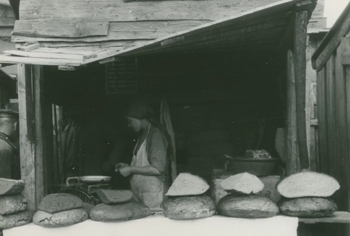 Пекарня №7 работает в небольшом, тесном помещении. Здесь рядом с квашнями свалены дрова, мука, инвентарь. Тут же рабочие раздеваются. Кругом теснота и грязь.