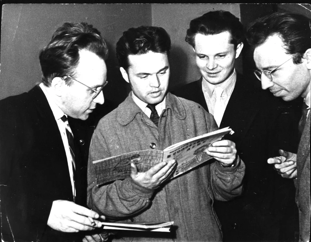 На фото: тульские писатели А. Кузнецов, И. Минутко, Ю. Щелоков, Е. Гаврилин. 1961 г.