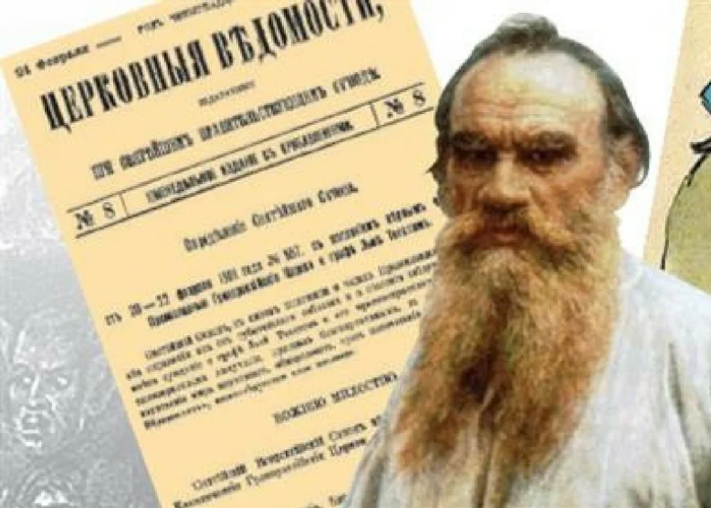 20–22 февраля 1901 г. Священный Синод вынес определение об отпадении Л. Н. Толстого от церкви. Газеты опубликовали этот документ 24 февраля. В нем, в частности, говорилось: «Церковь не считает его своим членом и не может считать, доколе он не раскается и не восстановит своего общения с нею». Толстому ставилось в вину неприятие догмата Троицы и божественности Иисуса Христа, непочитание всех церковных таинств, неверие в загробную жизнь.