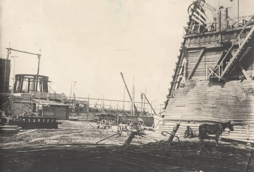 На фото из музея ОАО «Тулачермет»: строительство Доменной печи №1, 1931 г.