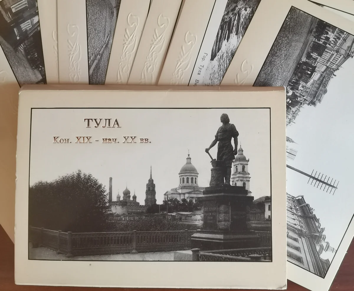 В июне 1991 г. в типографии издательства «Коммунар» вышел комплект открыток с фотографиями старой Тулы. Сделаны они были с явной любовью – с хорошего качества полиграфией и даже тиснением. Особенно впечатляет тираж – 100 000 экземпляров. Цена комплекта была 2 рубля 30 копеек.