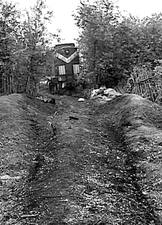 Вагоны с грехом пополам с их участка удалили, а вот сам тепловоз еще долго стоял на огороде.