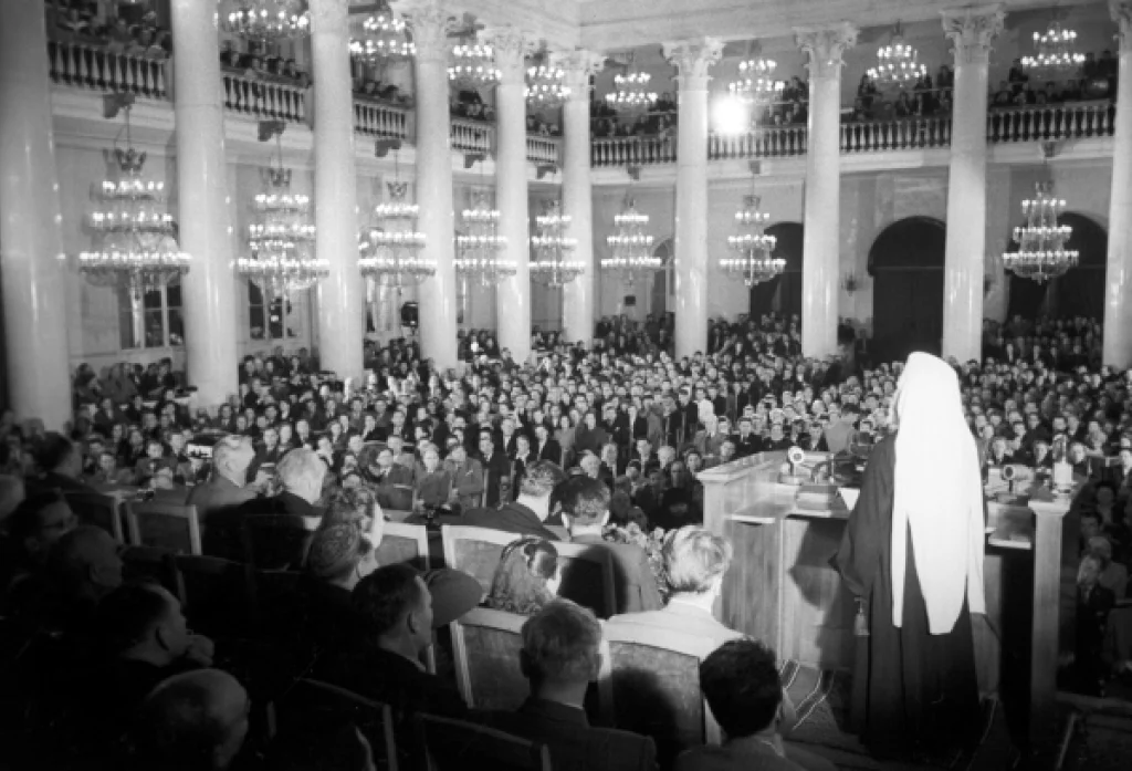 Православная Церковь была представлена на третьей Всесоюзной Конференции сторонников мира Главами двух автокефальных Православных Церквей в Советском Союзе: Патриархом Московским и всея Руси Алексием и Католикосом-Патриархом всея Грузии Каллистратом. Неизменный участник всех деяний советского народа, направленных к сохранению мира во всем мире, Митрополит Крутицкий и Коломенский Николай, являющийся членом Всемирного Совета Мира, был избран членом Президиума Конференции.
