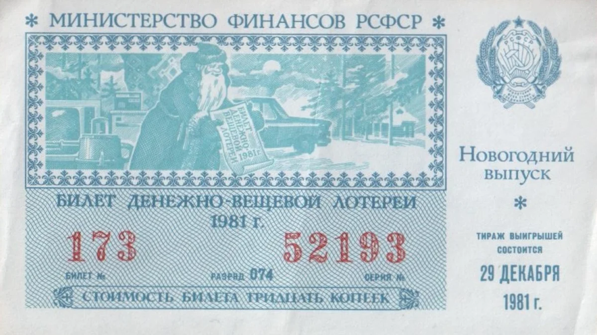 В ходе тиража разыгрывали 10 миллионов 480 тысяч вещевых и денежных выигрышей на сумму 18 миллионов рублей. Понятное дело, что большинство этих миллионов составлял выигрыш в один рубль, но тем не менее. На оплату выигрышей расходовалось шестьдесят процентов стоимости выпущенных билетов. Остальное поступало в бюджет. Уровень реализации билетов в Российской Федерации был достаточно высоким – 99,3 процента. Непроданные билеты погашала специальная комиссия.