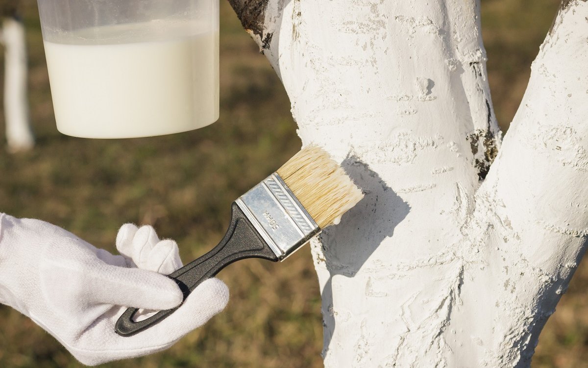 Кстати, если у вас деревья уже побелены с осени, все же стоит проверить, не сошла ли побелка вместе со снегом, и подправьте ее.