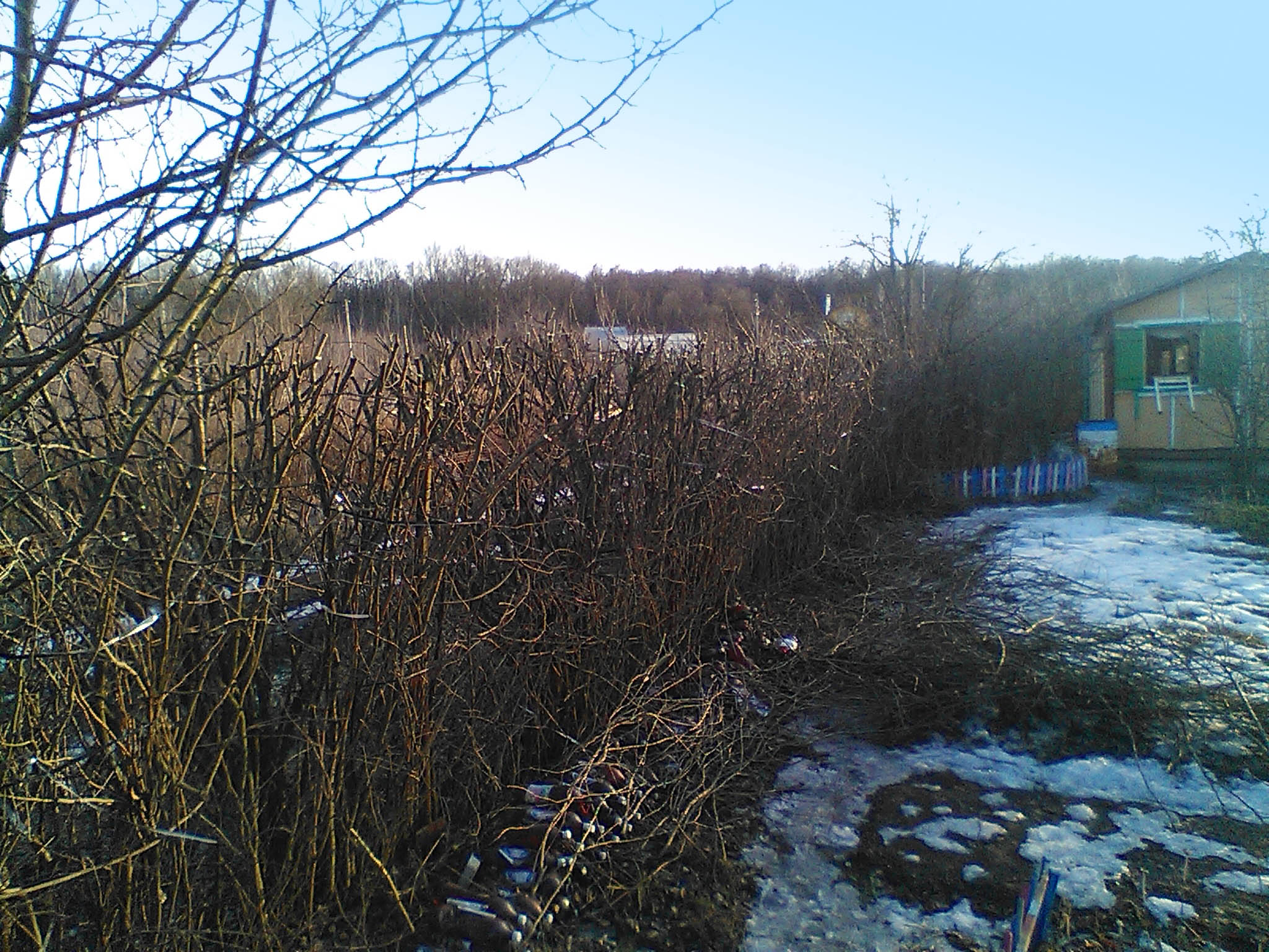 Кстати, начало марта — самое время для того чтобы постричь живую изгородь. Особенно, если она, например, как у меня, состоит из сплошных зарослей акации.