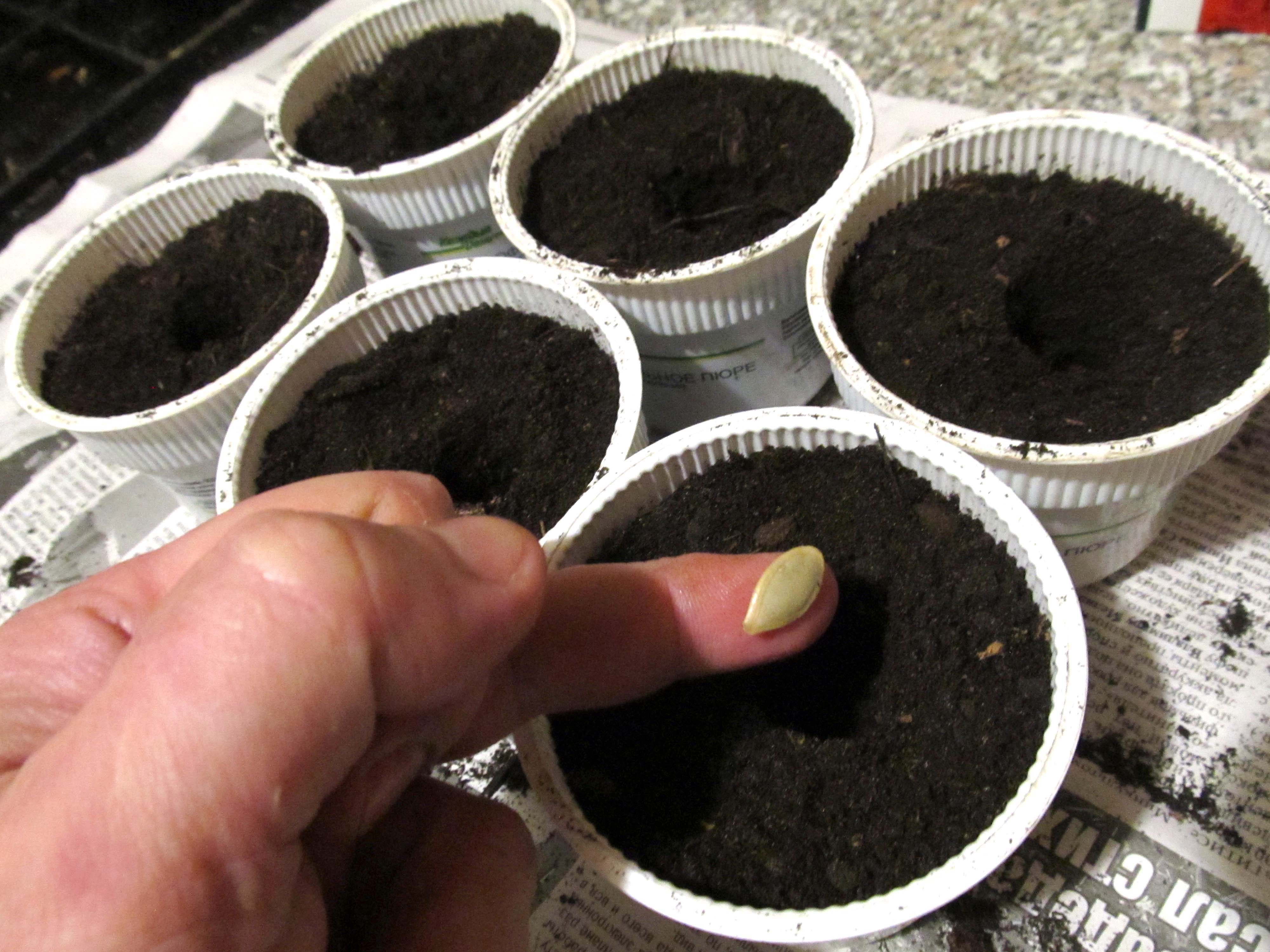 Для новичков! Общие требования к посеву: горшочки глубиной и диаметром не менее 7 см. Честно говоря, в идеале подходят баночки из-под дегидрированного картофеля и сметаны. Надо помнить, что тыквенные имеют достаточно хрупкую корневую систему, а это означает, что пикирование недопустимо. То есть каждое растение должно быть в своем горшочке.