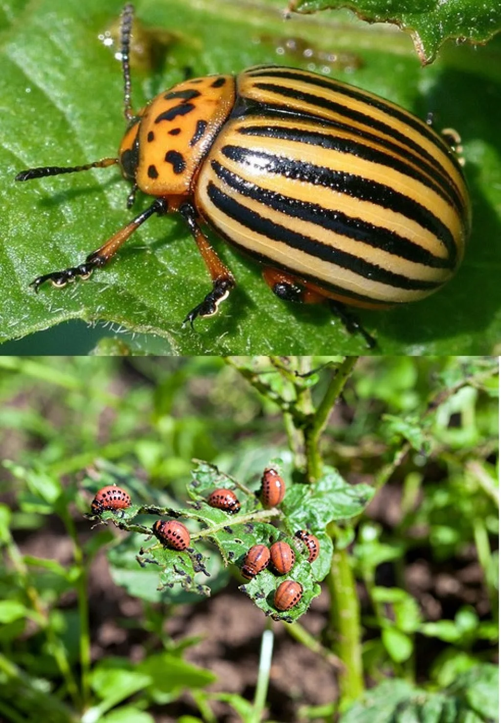 4) при заселении личинками и жуками 10% растений картофеля посевы опрыскивают один-два раза инсектицидами. Против личинок эффективны биопрепараты.