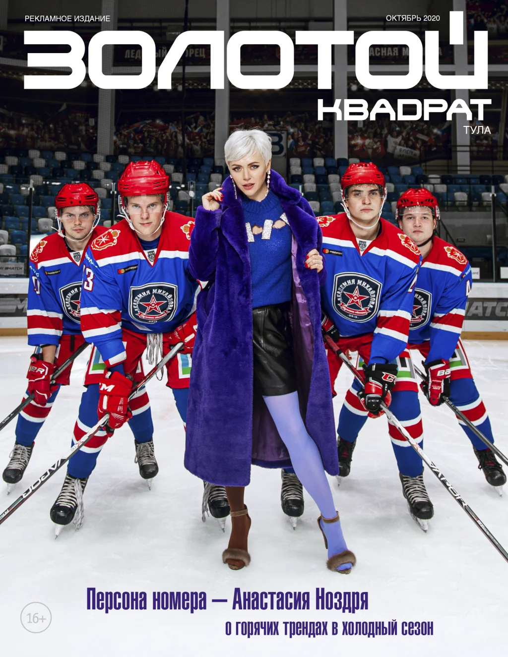 Вы сразу его узнаёте! Обложка яркая, как и её герои – fashion-стилист Анастасия Ноздря и хоккеисты из команды «Академия хоккея им. Б. П. Михайлова». Да, у нашего региона появилась своя хоккейная команда!