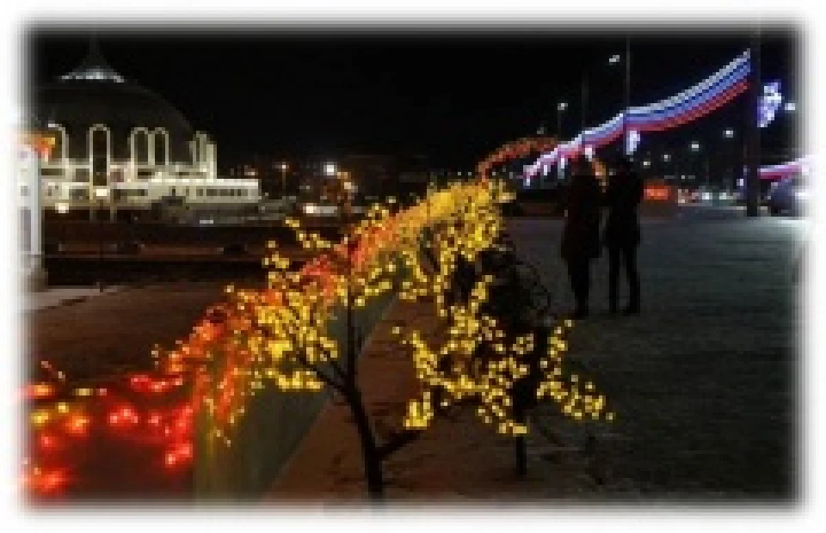 Будут установлены светящиеся композиции «бабочки», «снегири», «Дед мороз», «медведи», «олени», снеговики, которые играют на музыкальных инструментах, «фонтан», «корзина» и др. На территории ротонды на набережной реки Упы установлены горящие сакуры.