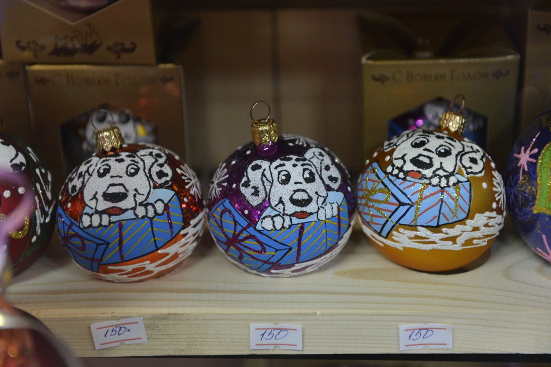 Елочные игрушки никогда не отстают от тенденций или тематик предстоящего года. И хотя 2018 год обещает много интереснейших событий – выборы президента, Олимпиаду под нейтральным флагом и Чемпионат мира по футболу, все же лучше выбрать стеклянный шар с изображением собаки, чем Мутко (стоимость от 100 рублей).