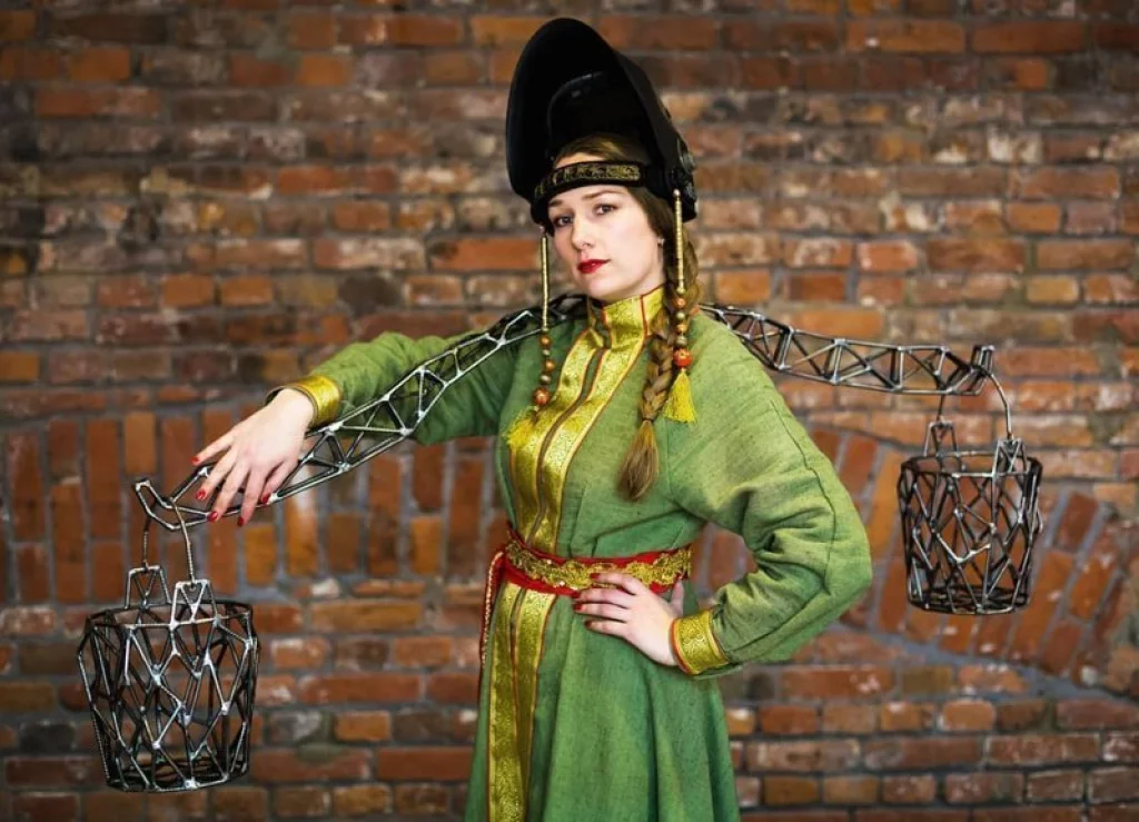 Индустриальную ёлку тулякам и гостям нашего города представит сварщица и художница Александра Ивлева. Она фотографируется в вечерних платьях из огнеупорного брезента, носит сварочную маску как кокошник и создаёт скульптуры и арт-объекты.
