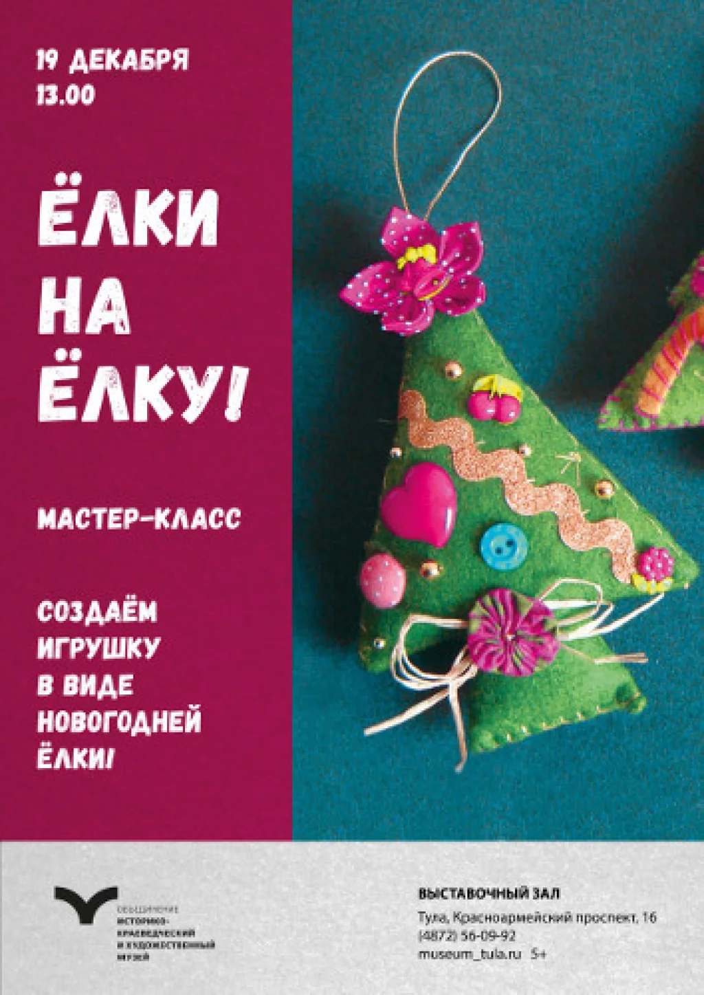 На нашем мастер-классе «Ёлки на ёлку» вы узнаете много интересного, например, о том, как ёлочка стала символом Нового года, о способах её украшения и многом другом. После информативной части вы сможете применить знания на практике и создать, а после «нарядить» своё праздничное деревце. Этот красиво украшенный сувенир можно подарить, использовать как ёлочную игрушку или декорировать им комнату.