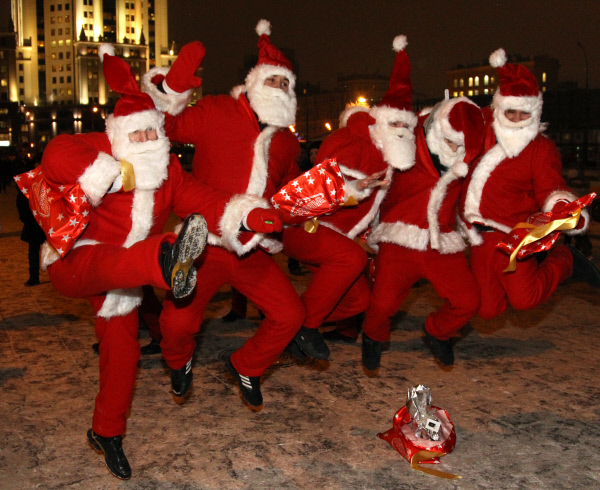 Поели оливьешечку – танцевать, скушали тортик - играть в игры, запили все «шампусиком» — вперёд под ёлку на центральную площадь города, водить хороводы…