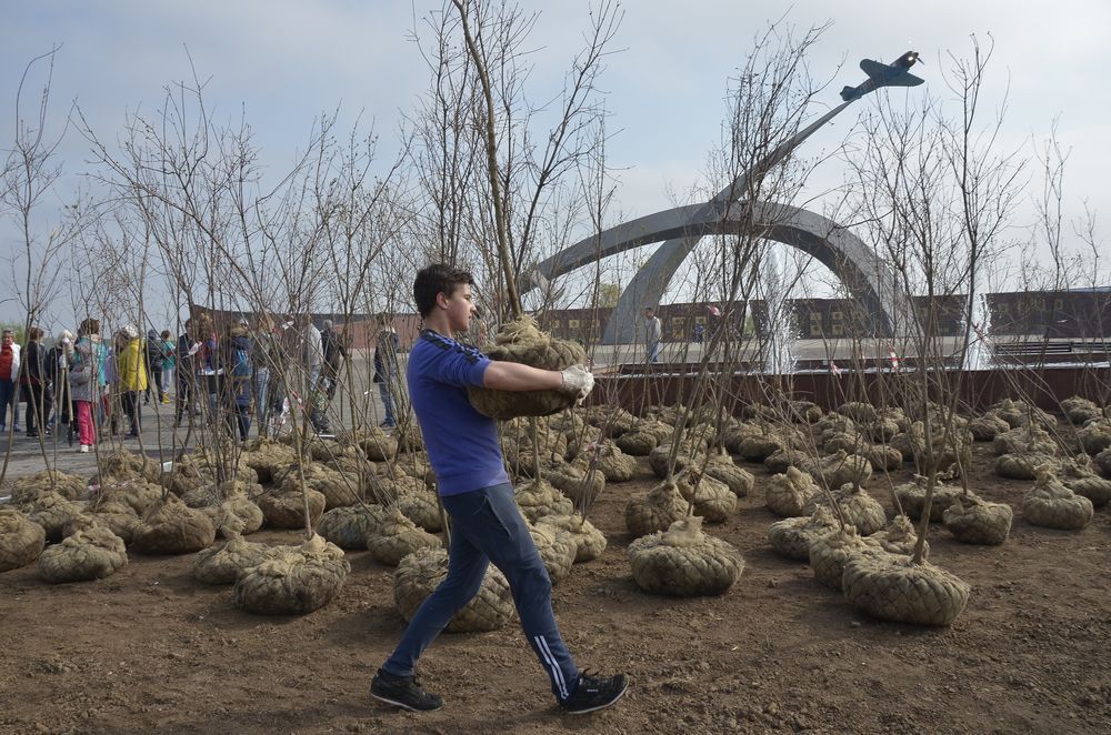 8 мая возле мемориального комплекса «Защитникам неба Отечества» высадили около 600 клёнов и туй.