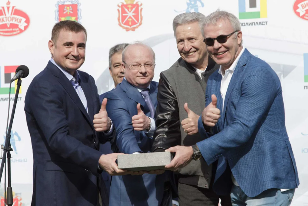В торжественной церемонии закладки камня, которая состоялась 27 мая, принял участие губернатор Алексей Дюмин, глава ООО «Полипласт Новомосковск» Александр Ковалев и легенды советского и российского хоккея.