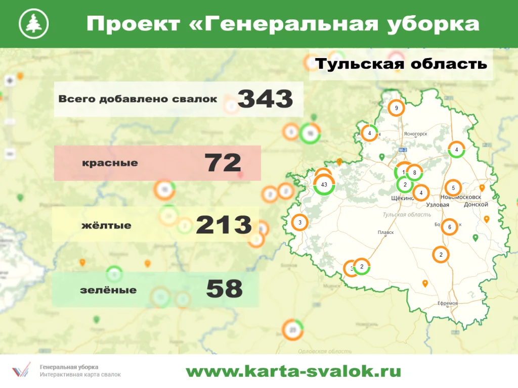 «По числу отметок на карте свалок можно выделить Тульскую, Московскую, Самарскую области и Республику Татарстан, которая к тому же является лидером по количеству решенных экологических проблем. В этом регионе удалось достигнуть положительного решения по 127 проблемам из 334 поступивших. Это более трети всех полученных обращений. Рассчитываем, что и в других регионах количество зеленых точек, то есть решенных вопросов, будет увеличиваться», - подчеркнул депутат.