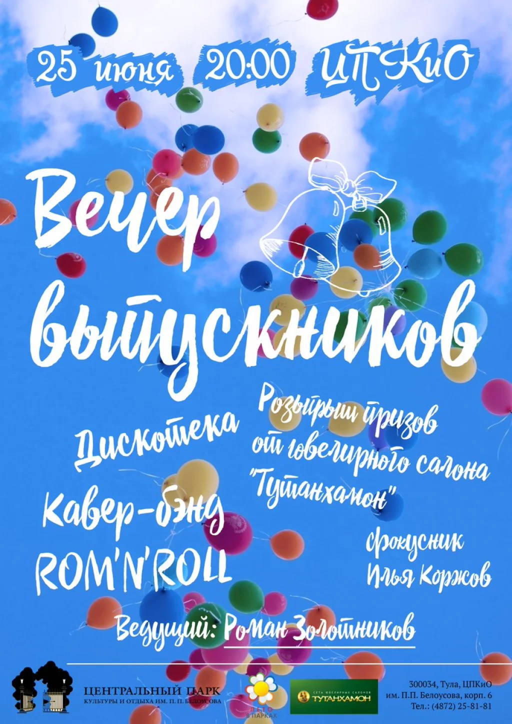 Накануне Дня молодёжи, 25 июня, в ЦПКиО им. П.П.Белоусова пройдёт «Вечер выпускников». В программе:
