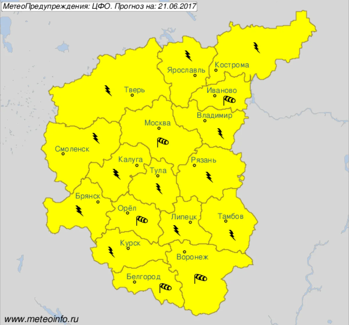 Сегодня, 21 июня, в Туле сохранится жёлтый уровень погодной опасности.