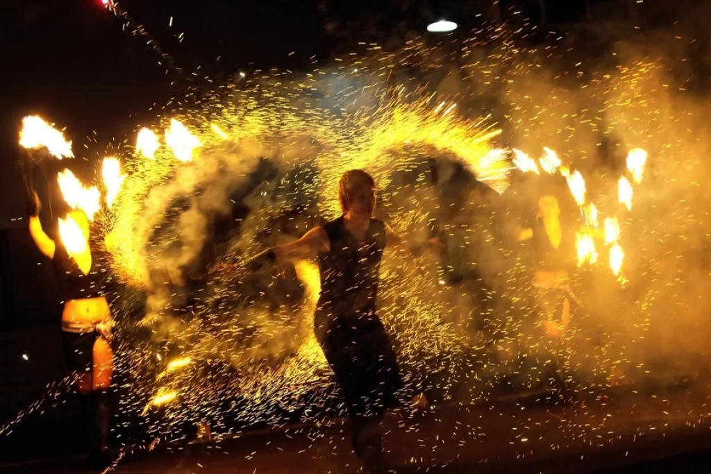 В 21.30 праздник продолжится фаер-шоу от артистов театра огня из Москвы.