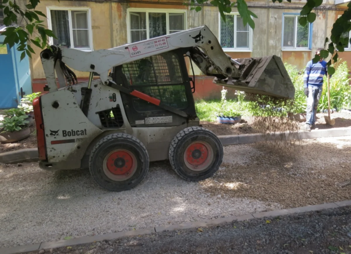 В настоящее время ведется асфальтирование дворов по адресам: ул. Кутузова, 96, 98, ул. Металлургов, 57, ул. Металлургов, 82б, ул. Металлургов, 84а.