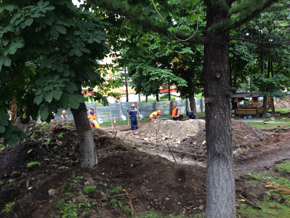 В Туле на Красноармейском проспекте продолжается благоустройство сквера