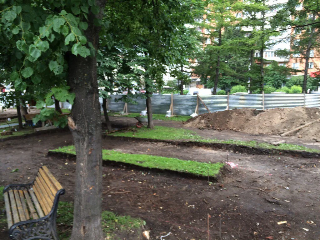 В Туле на Красноармейском проспекте, дом 14 ведется активное благоустройство сквера.