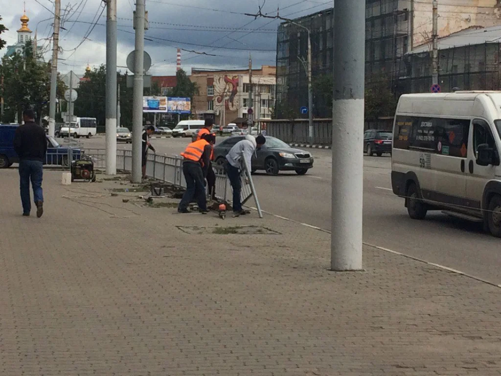 Сегодня, 6 июля, в Туле проходят работу по установке дорожных ограждений. Рабочие устанавливают барьерный "заборчик" на улице Советской.