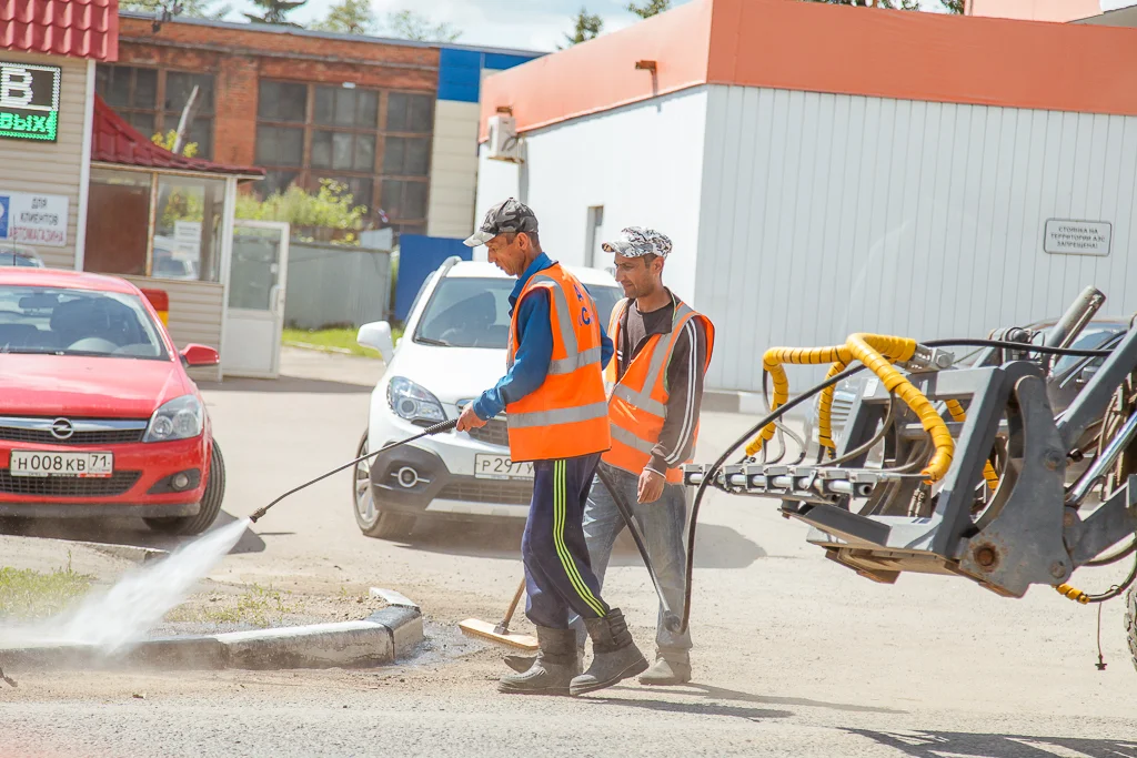 Подметены и помыты дороги на пр. Ленина, ул. Октябрьской, ул. Н. Руднева, ул. Советской, ул. Мосина, ул. Менделеевской, Калужском шоссе и других магистральных и второстепенных улицах.
