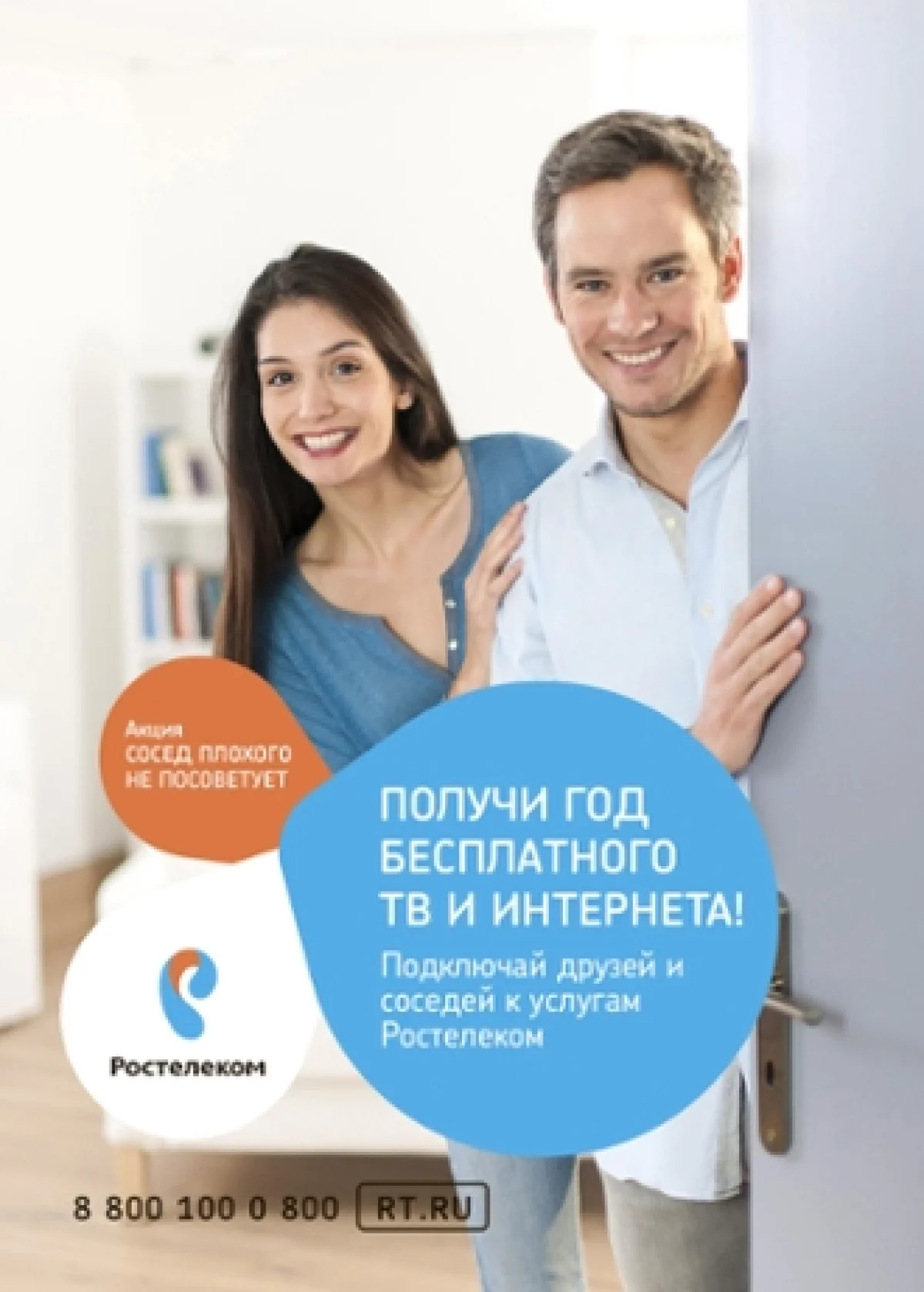 В Тульском филиале «Ростелекома» стартовала акция «Сосед плохого не посоветует», в ходе которой можно получить до года бесплатного пользования Домашним интернетом или Интерактивным ТВ. По условиям акции, если при подключении услуг новый абонент назовёт уникальный промо-код рекомендателя (действующего абонента услуг «Ростелекома»), то они оба получают месяц бесплатного пользования услугой. Скидка суммируется, но каждый промо-код позволяет подключить до 12 соседей, что может принести его владельцу до года бесплатного Интернета и Интерактивного ТВ.