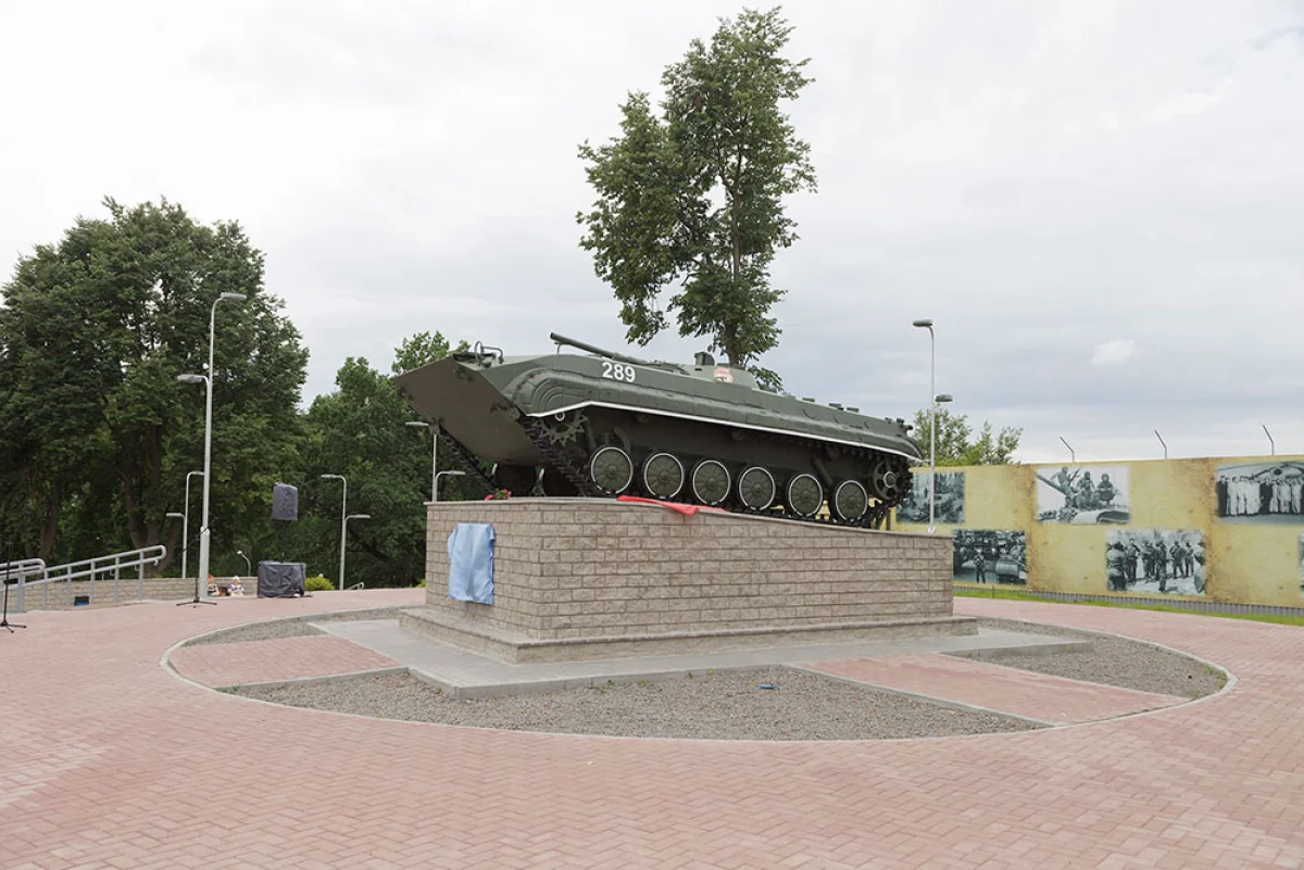 Торжественное открытие прошло накануне, 4 августа. В сквере установлен бетонный постамент с облицовкой, смотровая площадка отделана тротуарной плиткой. На постаменте установлена боевая машина пехоты (БМП). Также там размещен баннер с фотографиями участников локальных войн и военных конфликтов, географической картой с нанесением «горячих точек».