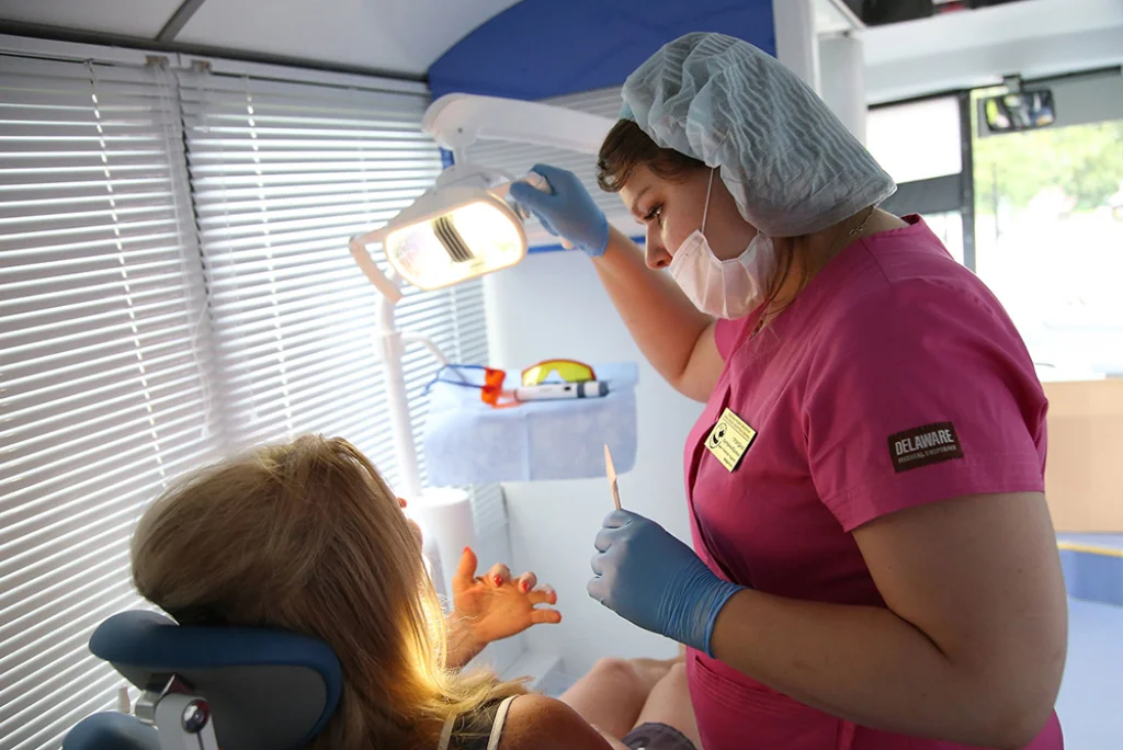 В расположенных в этом секторе трех передвижных комплексах «Диагностический кабинет» врачи-дерматологи провели осмотр на выявление рака кожи. В передвижном флюорографе прошло рентгеновское обследование легких, а на передвижной стоматологической установке - обследование полости рта на онкопатологию с помощью комплекта «АФС».