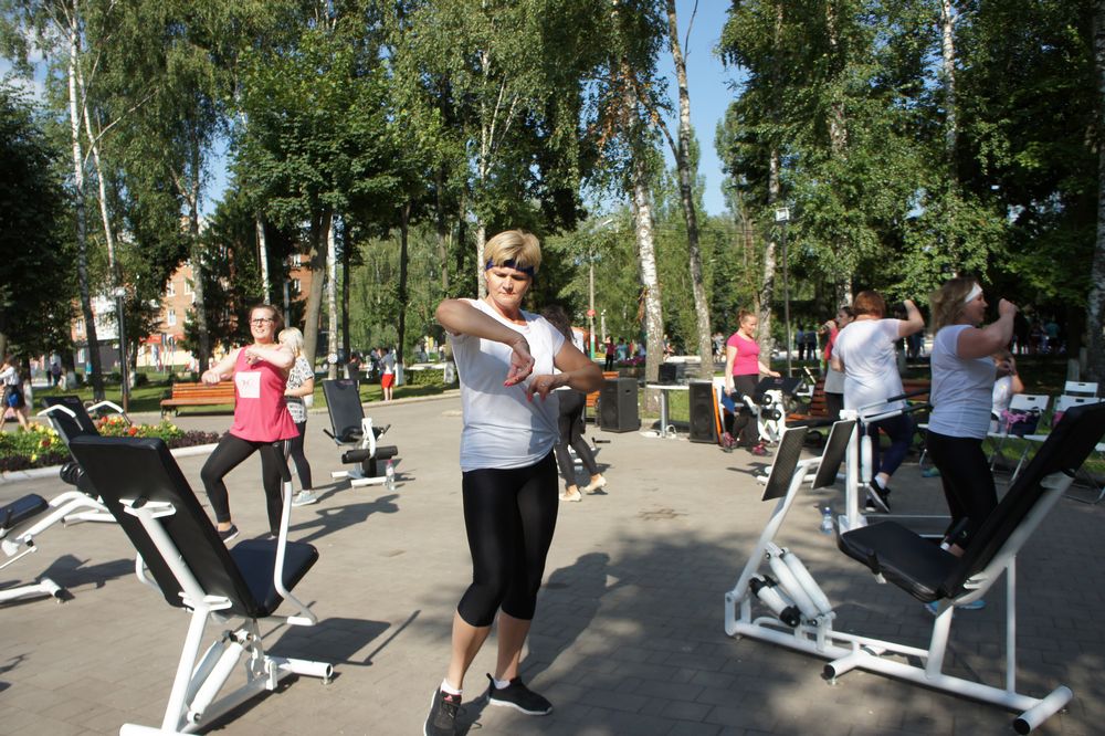 В самом сквере девушки энергично занимались фитнесом, танцевали и приглашали всех желающих присоединиться.