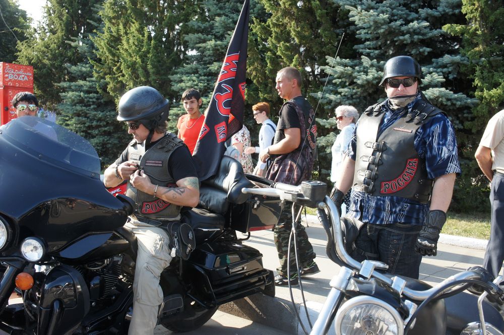 Байкеры из клуба «Ночные волки» устроили мотопробег по городу. После его окончания все желающие могли сфотографироваться с крутыми байками, а также их владельцами на главной площади. Прибытие русских мотоциклистов, кажется, никого не оставило равнодушными, и на целый час железные кони были облеплены любопытными узловчанами.