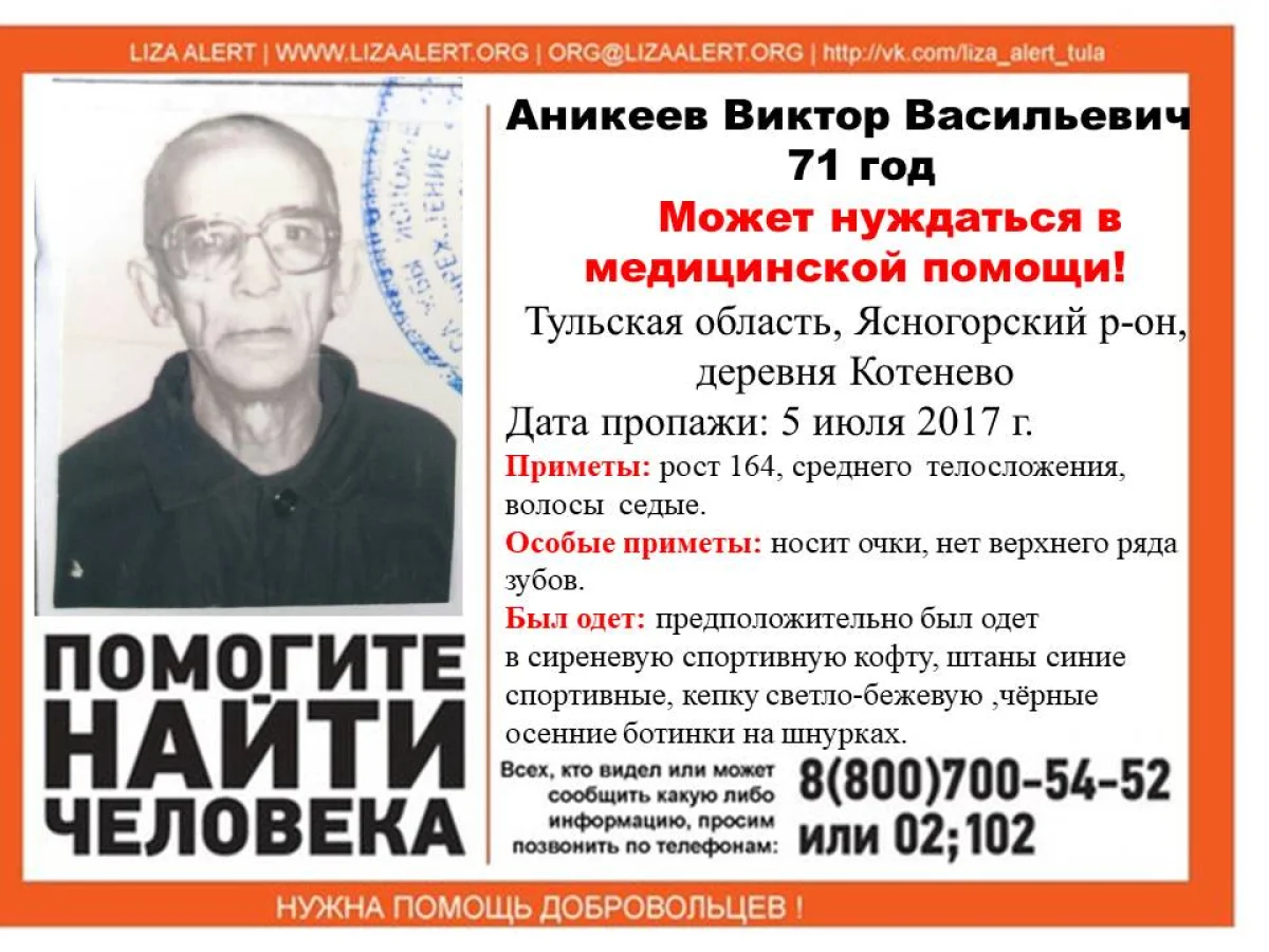 Поисковый отряд «Лиза Алерт» просит помочь в поисках Аникеева Виктора Васильевича 1946 г.р.