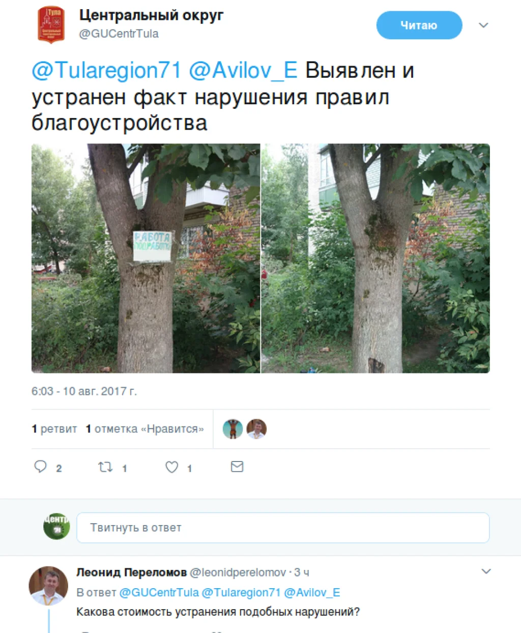 Главное управление администрации города Тулы по Центральному территориальному округу отчиталась о выполненных работах по благоустройству: