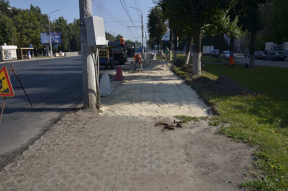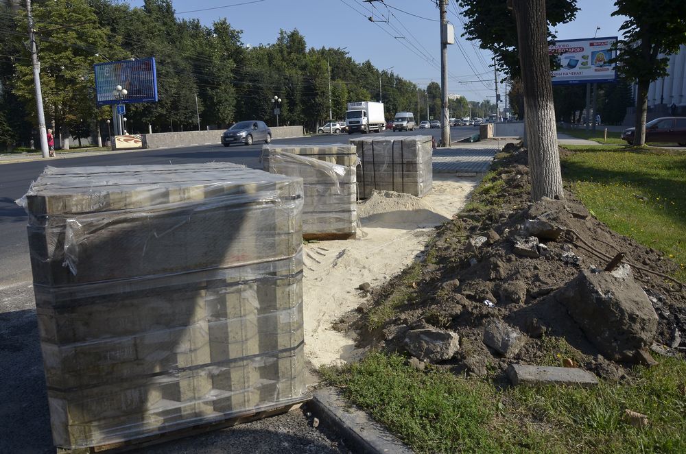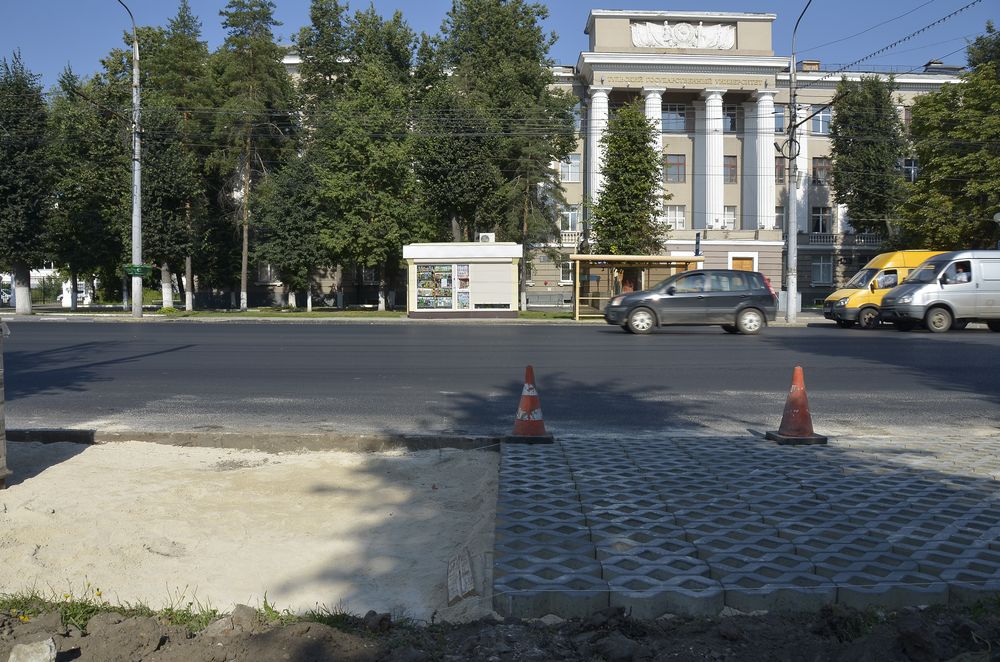 На проспекте Ленина в Туле обустраивают экопарковку. Стоянка появится на участке от ост. Мира до ост. Политех по направлению к центру.