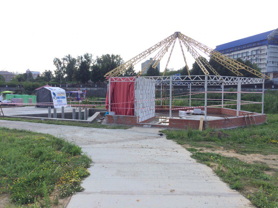 На набережной Упы строят необычное сооружение. Мы решили выяснить, что же там будет.