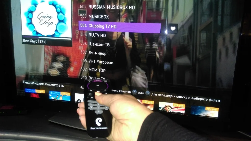 Телеканал Clubbing TV HD абоненты «Интерактивного ТВ» от «Ростелекома» могут найти на кнопке 504 в пакетах «ТВОЙ ОПТИМАЛЬНЫЙ», «ТВОЙ ПРОДВИНУТЫЙ» и «ТВОЙ МАКСИМАЛЬНЫЙ».