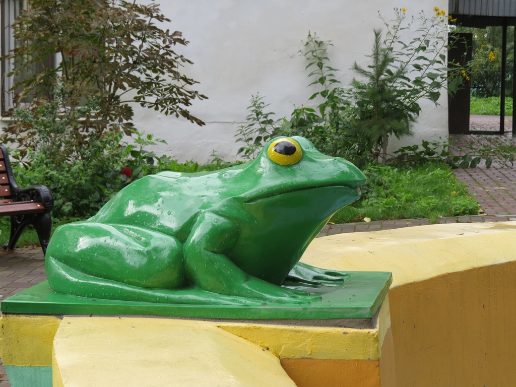 Четыре лягушки и крокодил сделаны из полимерного композитного материала. Инициатором участия в проекте стал старший по дому Вадим Хмельников.